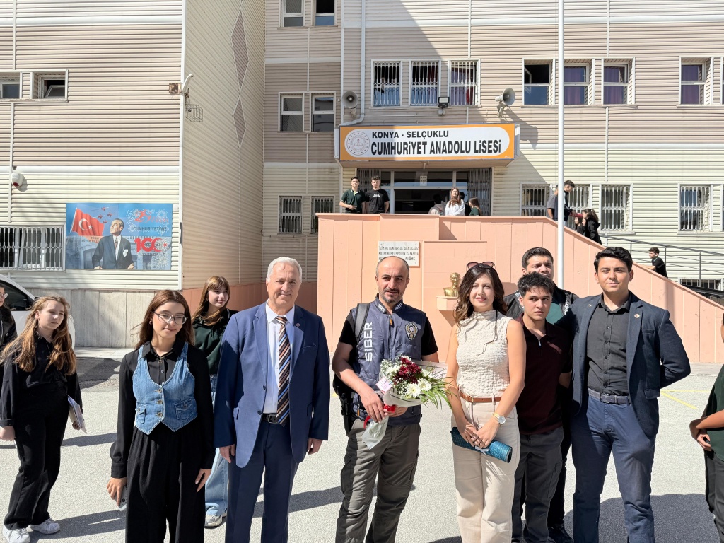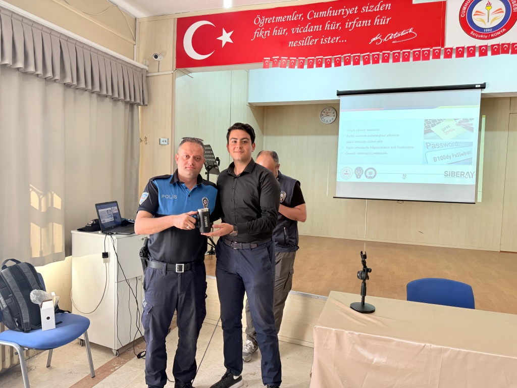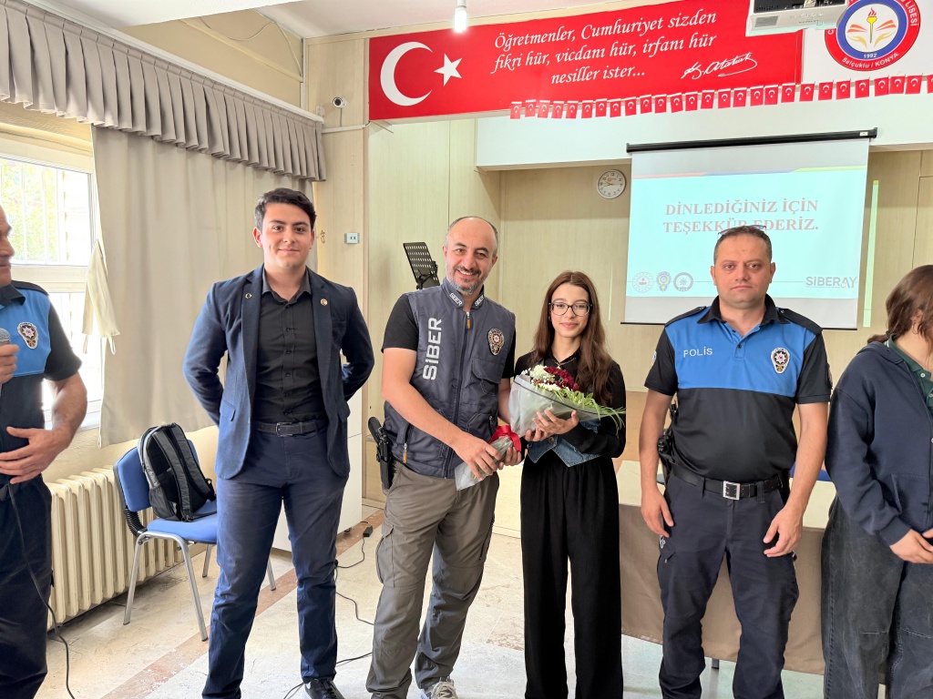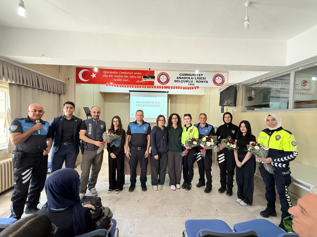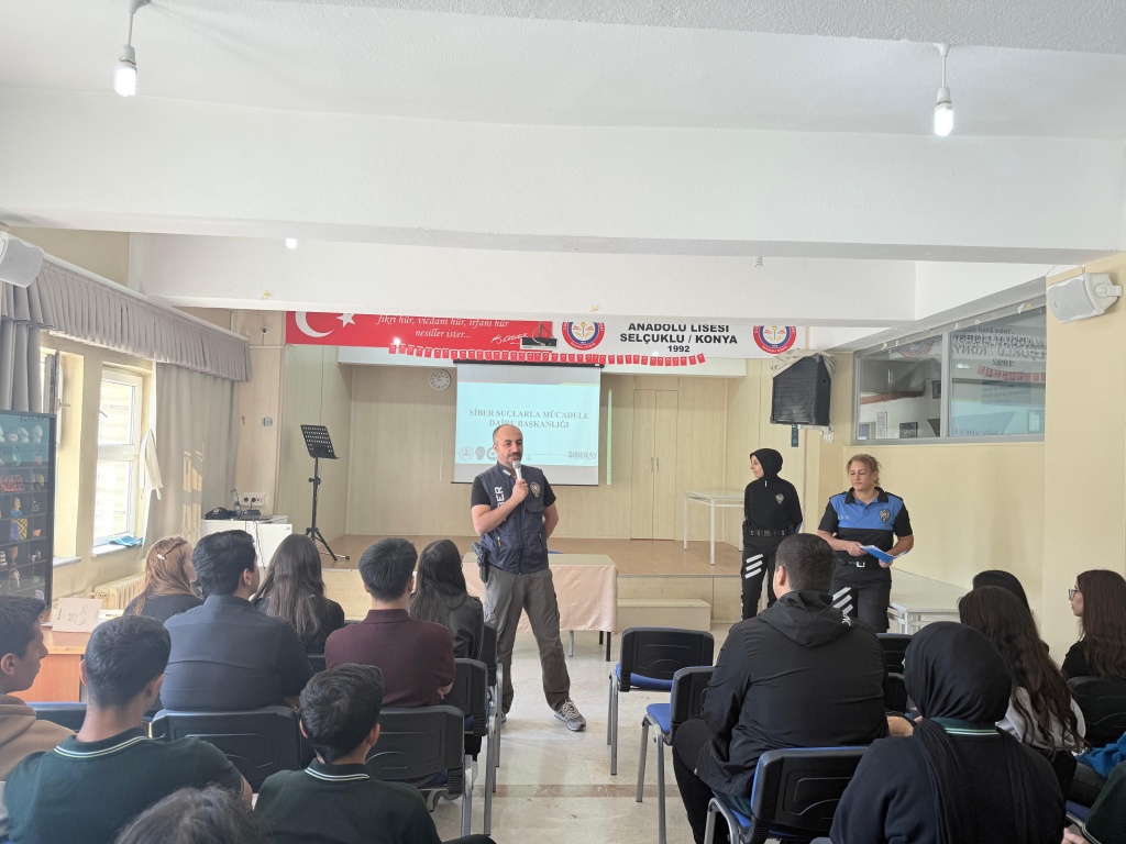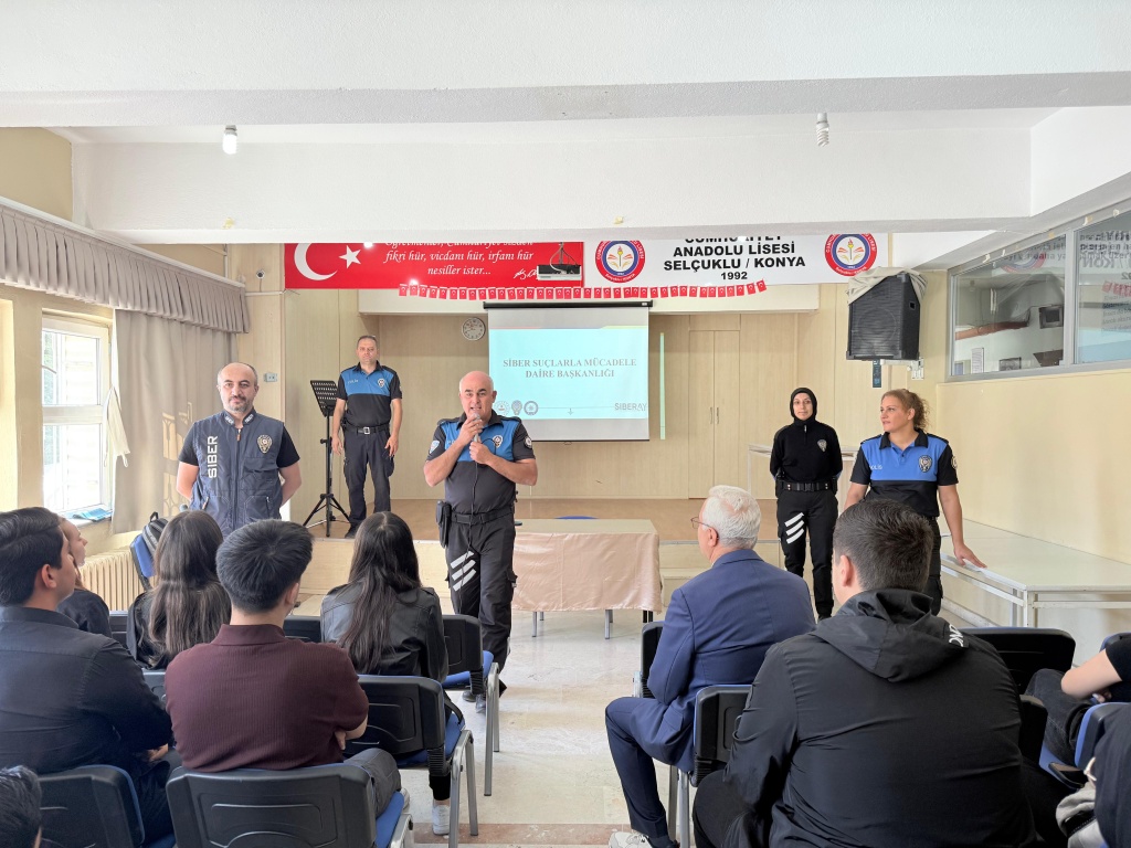 Konya İl Emniyet Müdürlüğü Toplum Destekli Şube Müdürlüğü, Siber Suçlarla Mücadele Şube Müdürlüğü ile Trafik Denetleme Şube Müdürlüğü 'nün Kahraman Polisleri TEKNOLOJİ BAĞIMLILIĞI konusunda öğrencilerimizi bilgilendirmek için okulumuzu ziyaret ettiler. Değerler Kulübü olarak Kahramanlarımıza çok teşekkür ediyoruz. Emeklerine sağlık.